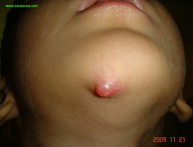 | Diagnosis: Nodular fasciitis Omid Zargari, MD, FAAD: Nodular Fasciitis(NF) is a benign reactive tumor presenting as a rapidly growing subcutaneous nodule. This tumor is seen mostly in young to middle-aged adult s. In children, the head and neck region is the most common site. Reza Ghaderi, MD: Nodular faceitis is a benign proliferation of fibroblasts and myofibroblasts in the subcutaneous tissues. The lesions are generally small and solitary, arising commonly in the upper extremities of adults and in the head and neck region of infants and children. A history of trauma may precede these reactive lesions, but their cause is unknown. Physicians are often called upon to do excisional biopsies in the diagnosis of subcutaneous tumors. Benign fibrous tumors represent a group of clinical entities that are often difficult to diagnose. NF is one such benign fibroblastic proliferation whose rapid growth and rich cellularity frequently cause the lesion to be misdiagnosed as sarcoma. NF was first described by Konwaler in 1955 and was termed pseudosarcomatous fibromatosis. Other terms, such as pseudosarcomatous fasciitis, infiltrative fasciitis, and proliferative fasciitis, have also been used synonymously. The incidence of nodular fasciitis is unknown. It is possible that the lesion's true incidence has been obscured by prior misdiagnosis as malignancy. Nodular fasciitis is most commonly seen in young adults between 30 and 40 years of age. Approximately 10 percent of the lesions occur in children. Men and women appear equally affected, although in childhood the lesions may occur predominantly in boys. Most patients with this reactive proliferation have a rapidly growing mass. In several reports, nearly half the patients had noted the growth for less than a month. More than one third of patients report pain or tenderness associated with the lesion. Diagnosis of NF requires histologic confirmation, and both diagnosis and treatment are accomplished by excisional biopsy.
